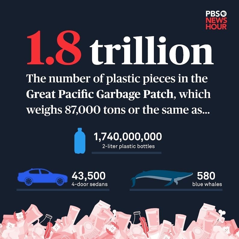 In the report, @TheOceanCleanup estimates this soup of trash in the northern Pacific contains 1.8 trillion pieces of plastic — enough to give every person in the world 250 scraps of this debris.